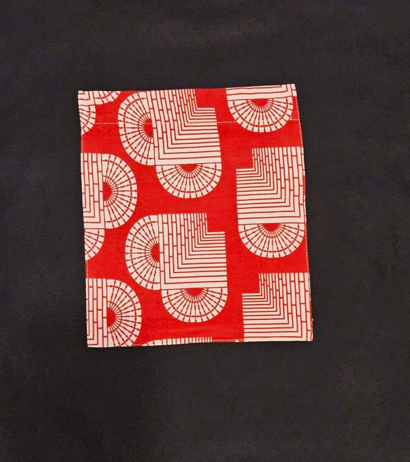 | Détails | Tissu ethnique rouge/bordeaux à motifs géométriques en forme de cœur |